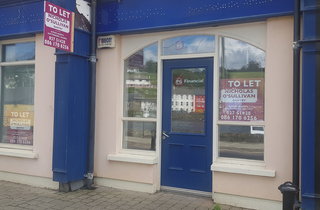 Commercial premises in the town centre. This property has great street frontage. It lends itself to many uses. Hair saloon, Barbers, Office space, ......... The ground floor comprises of bright modern shop floor area as well as W.C. storage and kitchen. 1st. floor consists of bright floor area which has an attractive modern layout with kitchen area as well as storage and W.C.
